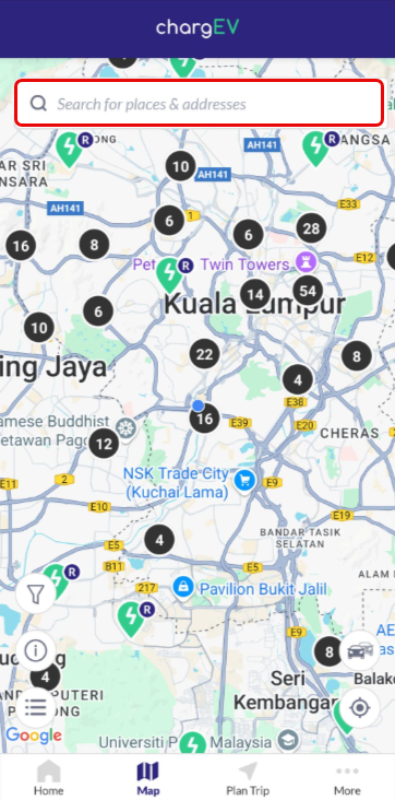 2. Search using the "Map", tap on the search field - Search for places & addresses