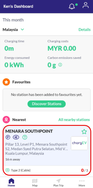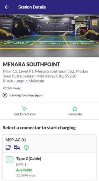 3.2. The details of Station will be shown. Press on Start Charging