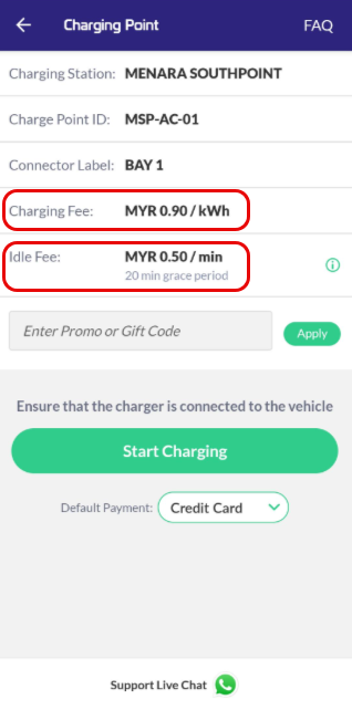 Note: You can only check the fee / rate when the charger is Available